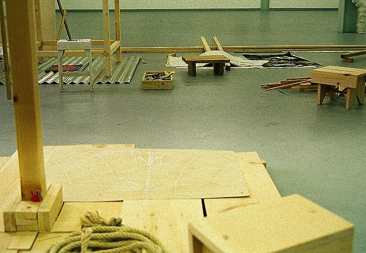 Final Project: Circus (100 square meters’ installation using various materials as wood, fabric, metal and ropes in “discussion” with abstract paintings).